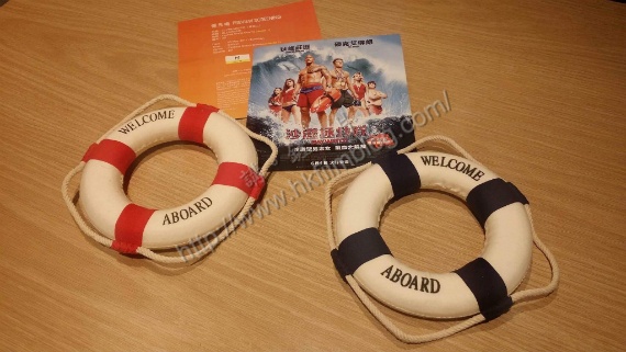 《沙灘拯救隊》是美國很出名的劇集改編而成的電影,以沙灘拯救作為主題,而電影戲票方面則隨戲票附上小型水泡一個,當中更有紅、藍雙色以供選擇,以配合其主題金。