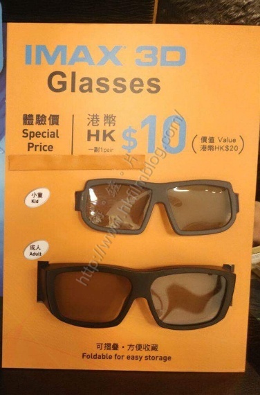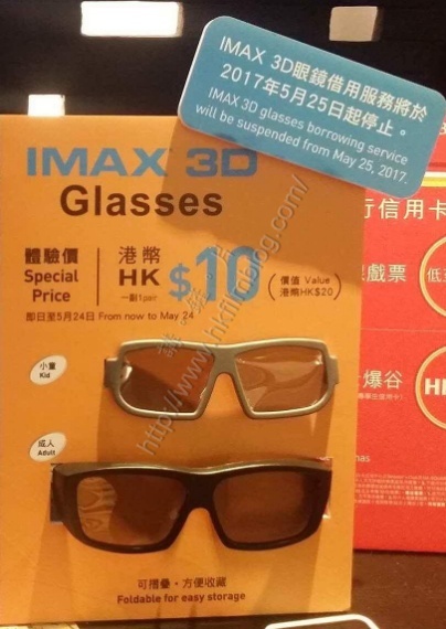 上圖所見,便是UA院線自四月下旬張貼的通告,指IMAX 3D眼鏡借用服務於五月廿五日起不再提供,並於五月廿四日或之前讓觀眾可以體驗價十元購買IMAX 3D眼鏡。