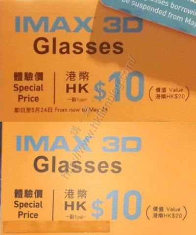 將兩圖比較一下,雖然通告大同小異,不過其體驗價十元,已遮蓋了五月二十四日的期限,也意味著原本於五月廿五日起IMAX 3D眼鏡索價廿元的政策觸礁。