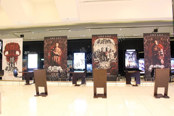 上圖所見,便是「講。鏟。片」情報人員日前於觀塘Palace apm戲院所攝,可以看到在戲院入場後的大堂位置,在鏡面牆身貼上了四幀大型海報以作宣傳。當中其中兩款為電影的初版與新版海報,至於另外兩款則屬於兩位主角張繼聰與白只的個人專屬海報。