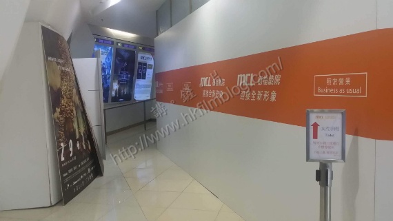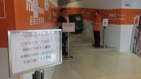 而戲院大堂方面,可以看到前往女洗手間只剩下一條通道,而男洗手間則在工程進行中,並暫停使用。