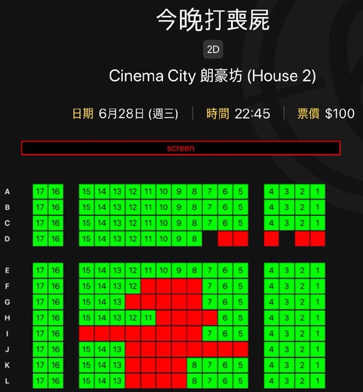 其實該晚的優先場其實也不止在旺角百老匯一場,在同區的Cinema City朗豪坊,下周三晚上十時四十五分場次也會上映《今晚打喪屍》,並且正在開售當中。