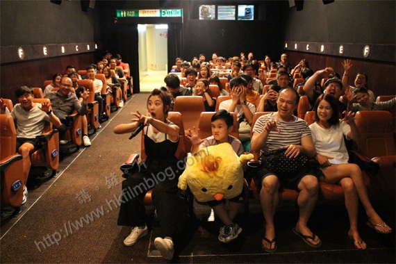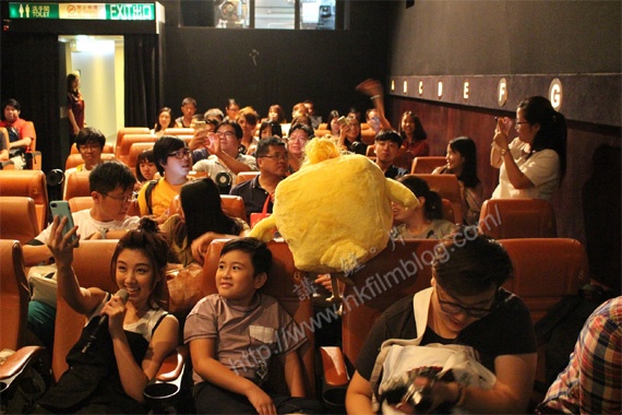 至於另一場作開場謝票,謝票團隊先於戲院的第一行恭候觀眾入場,當中更包括了「雞精」,而觀眾對於該場有謝票甚為驚喜。