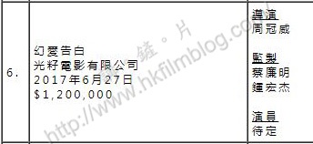 香港電影發展局的電影發展基金於二零零五十一月起推出的「電影發展基金電影製作資助計劃」以來,至今已完成七個季度的審批工作,當中共有廿五項計劃申請,並有六項獲批,而最新獲批項目,為周冠威的《幻愛告白》。