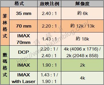 上圖所見,便是六個不同版本可以看到的情況。當中在理論上,香港現時流行的數碼DCP格式解像度為2k與4k、數碼IMAX一般解像度為2k,而新一代的IMAX with Laser則為4k解像度。至於菲林一般相比起的解像度較高,例如35mm相對解像度為6k、70mm為12k-13k,而IMAX 70mm則更達18k。