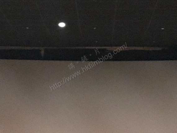 上圖所見,便是「講。鏟。片」情報人員於周日下午時份在My Cinema Yoho IMAX院進場後及開場前所攝,可以看到在IMAX影廳銀幕的頂部,卻出現一道白色的橫邊,看來也許是在拉起銀幕之後,黑邊的圍封不足,令到銀幕出現如此的情況。
