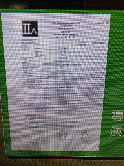 再來看看旺角百老匯戲院展示情況,《電影檢查條例核准證明書》根本無法清晰可見,未知是否有違法之嫌呢?也許,戲院欲省地方,也不能「省過頭」,違反法例的要求。未知道執行法例的電影、報刊及物品管理辦事處又會否作出跟進呢?