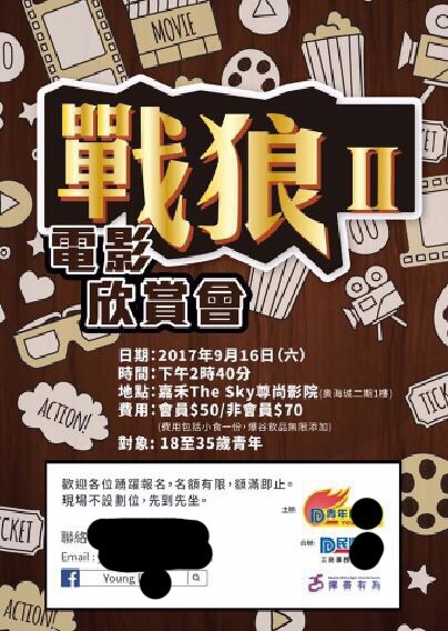 其實,這個政黨過去也會包場辦電影欣賞會,以低廉票價吸引觀眾,當然目的也是同時收集個人資料作其他用途。未知大家對於這個電影欣賞會,又會有多少興趣呢?