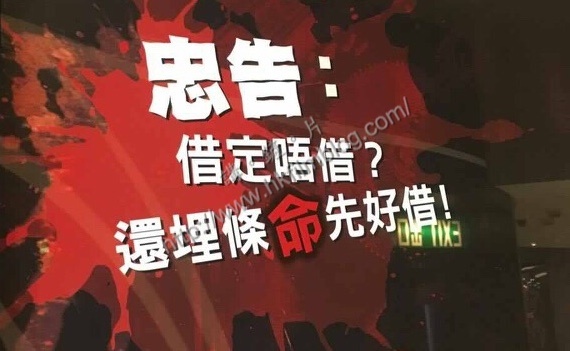 上圖所見,便是一部電影的預告,當中寫上「忠告:借定唔借?還埋條命先好借!」如斯的用語,跟近期不少銀行或財務機構提供的信用咭或貸款服務廣告片末的「忠告:借定唔借?還得到先好借!」不謀而合。