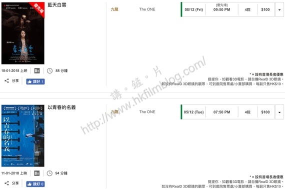 臨近年尾,又差不多時香港電影金像獎提名資格「截止」之時。近年流行不少電影會在年底時於七天間上映五場,以趕及今年的片目資格。今年兩部香港亞洲電影節的開幕電影《以青春的名義》與《藍天白雲》便雙雙開始展開其五場放映,而其門票已公開發售。