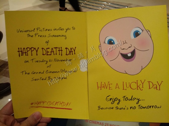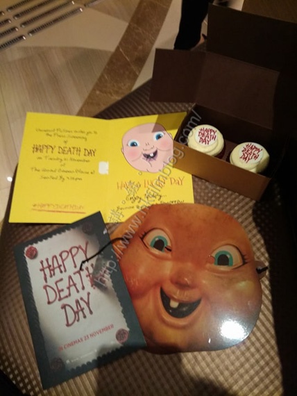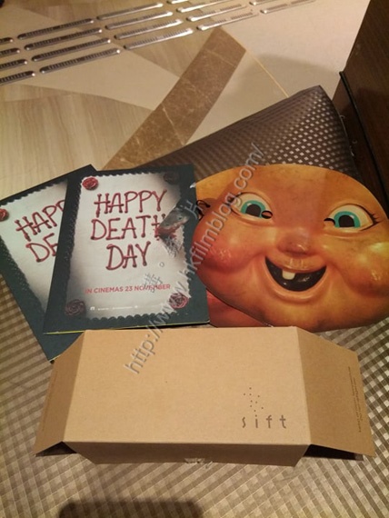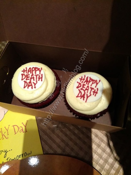 至於小禮盒則看到載著蛋糕兩件,而且還寫上英文片名「Happy Death Day」的字樣。