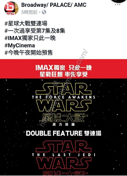 迪士尼發行的《星球大戰:最後絕地武士》將於十二月十四日上映,在其電影擁有龐大影迷之下,迪士尼發行與院線合作,安排電影於十二月十三日晚上至十二月十四日凌晨,放映第七集與第八集的「雙連場」,可是不同院線的手法,卻惹來不同的反應。