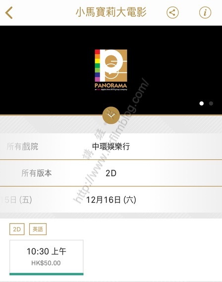 《小馬寶莉大電影》剛於今天上映,而上圖所見,便是來自英皇戲院手機應用程式的截圖,可以看到電影於周末上映早上十時半早場,不過票價卻只是五十元。