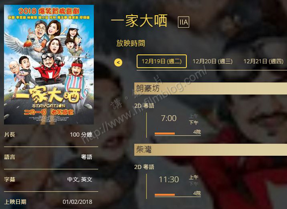 另一方面,一家大晒亦安排於明天起一連三天作五場優先場放映,當中包括十二月十八與二十日在Cinema City朗豪坊放映晚上七時正場次,而十二月十八與十九日於Cinema City柴灣放映早上十一時半場次,而十二月二十日則放映早上十一時正場次。未知各位有沒有興來先睹為快呢?