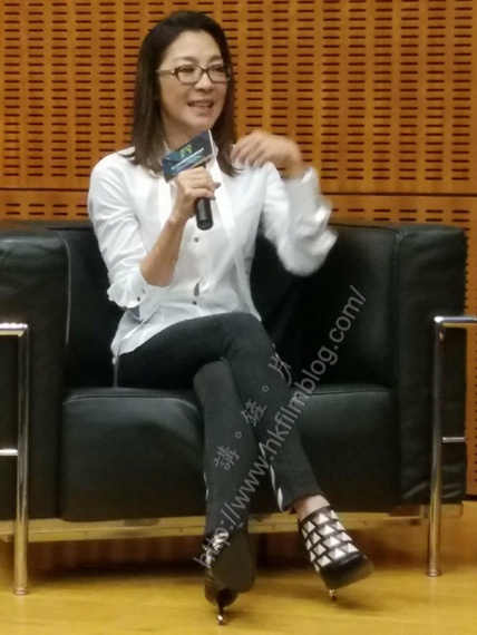 會上她笑談自己三十年演藝生涯的趣事,並解答不少提問觀眾的問題。她表示進到荷李活初期並不精通中文和廣東話,但基於自己的舞蹈底子以及努力不懈的練習,故此有幸嘗試接拍不同類型的武打片。楊亦提到自己喜歡挑戰自我和帶給觀眾新鮮感,故後來亦有嘗試較依賴情感演釋的角色如《昂山素姬》等,甚至參與《功夫熊貓2》的配音工作,及後不嘗試擔任監製工作。直至近年亦開始接觸電視劇的演出,在整個演藝生涯的嘗試可謂五花八門,樣樣皆能。當被問及如何在演藝工作展現出亞洲的文化,她指出自己渴望電影裡有更多亞洲人的參與,例如她表示自己特別樂意與年輕亞洲導演合作,而作為監製時更會主動發掘不同有潛質的亞洲演員,讓他們有機會吸收外國拍攝經驗。