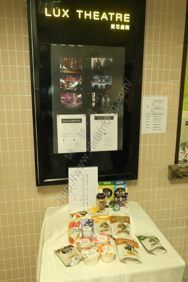 上圖所見,便是「講。鏟。片」情報人員近日於紅磡寶石戲院所攝,可以看到該戲院大堂一角擺放了多款食品,還有一個牌,看起來還以為是一個葬禮或是祭祠的儀似的。