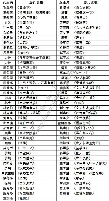 女主角提名今年隨著部分電影搶閘報名令局勢改變,且看最終提名結果又是怎樣。