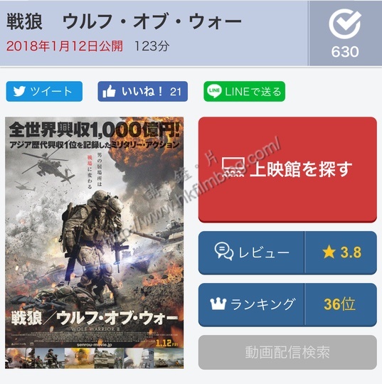 上圖所見,便是來自日本的電影網站,可以看到《戰狼II》剛於一月十二日在日本上映。