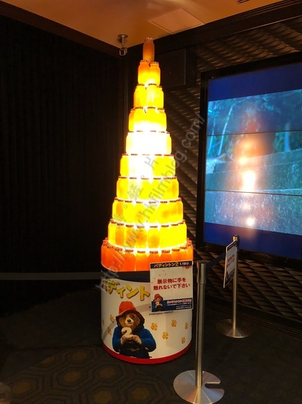 上圖所見,便是「講。鏟。片」的日本讀者提供的圖片,可以看到上圖來自其中一家戲院的《柏靈頓2》的宣傳。當中宣傳看似沒甚麼特別。但是當中的重點卻是以大量的果醬樽砌成仿如聖誕樹的款式。雖然聖誕已過,但看起來仍沒有甚麼過時的感覺。