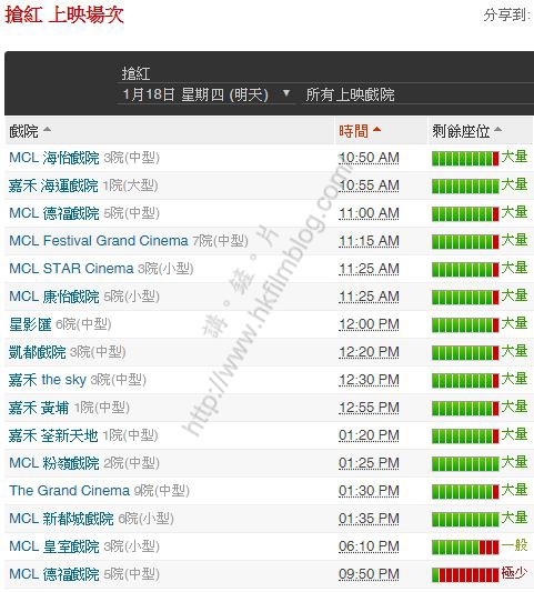 寰亞發行、黎明首部自導自演的電影《搶紅》將於明天上映,雖然全港共有十多家戲院上映,不過看來需要上班的朋友,在香港觀賞《搶紅》,看來並不容易。