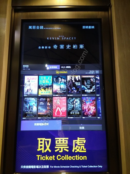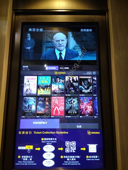 上圖所,便是其中一家戲院的自助售票機電視屏幕的情況。該屏幕正在放映由洲立發行、今天上映的電影《萬惡金錢》,當中可以看到主角的情況。不過怠覺好像有點不對勁。