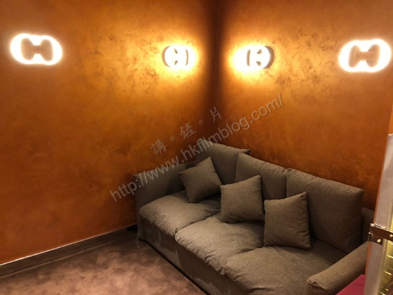 在開場前約廿分鐘左右,戲院職員讓我們進入該戲院的貴賓等候廳。相比起其他設有該影廳戲院來說,Cinema City Victoria的影廳等候空間其實較又一城Festival Suite為少,不過卻在擺位上相當巧妙,看起來算是實用。當中的其中一角,便擺放了一張三座位梳化。而在裝修上亦將Cinema City品牌融入其中。