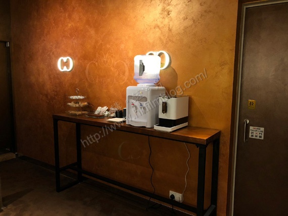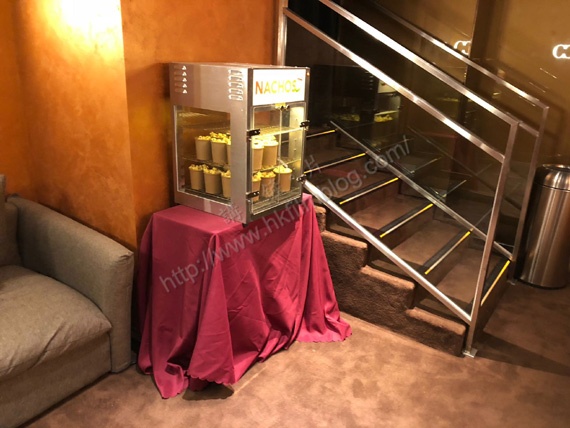 在爆谷擺放位置對面,則看到小食與水吧,當中小食包括了朱古力與餅乾。而同時提供了蒸餾水機與咖啡機。觀眾可以以自助形式享用茶或咖啡等。