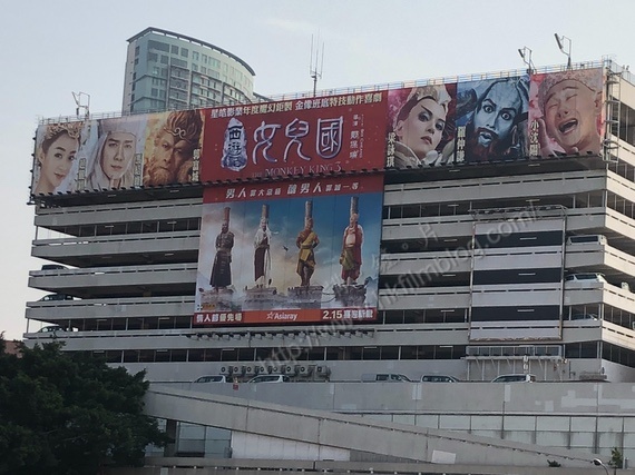 另一方面,星皓發行、鄭保瑞執導,郭富城、馮紹峰小瀋陽、羅仲謙等主演的《西遊記女兒國》,則在紅磡車站的停車場放上T字型的廣告。以面積來說,可算是四部電影裡面積最大的一部。