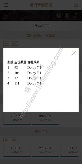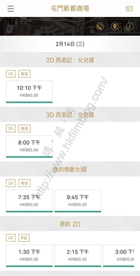 另一方面,英皇戲院已在其官方網站及手機應用程式預售二月十四日的戲票。可以看到該戲院的票價,當中2D電影票價為65元,而3D票價則為85元,票價水平與UA屯門市廣場戲院看齊,但設備較新。