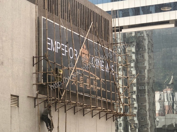 與此同時,「講。鏟。片」情報人員亦發現在新都大廈外牆的燈箱已開始拆除棚架,昔日的戲院畫板位置變成了英皇戲院的標誌。