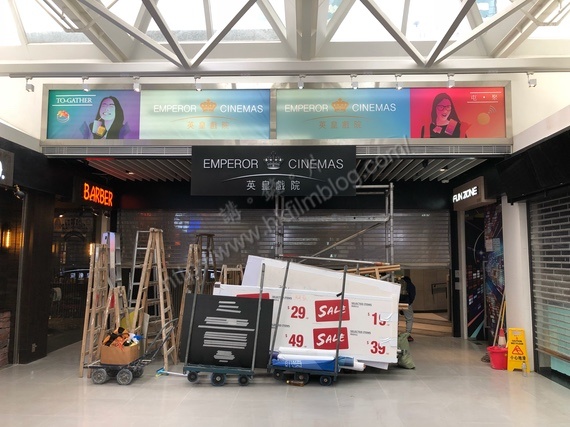 上圖所見,便是「講。鏟。片」情報人員於今天早上在屯門英皇戲院所攝,可以看到戲院位於商場的二樓,而圍板亦已經拆除。戲院門口亦已看到招牌。至於戲院的票房與小食部則位於毗鄰的一個舖位。