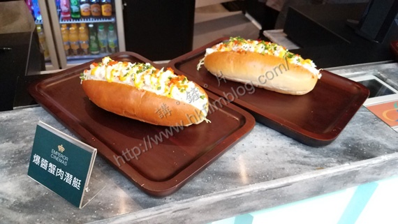 除此以外,戲院更特別推出69元的爆醬潛艇,可以看到麥包裡有份量頗多的蟹肉,再配上椰菜絲、芝士醬、蟹籽、蛋黃醬與細香蔥。而在現場試食所見,味道亦甚具層次。