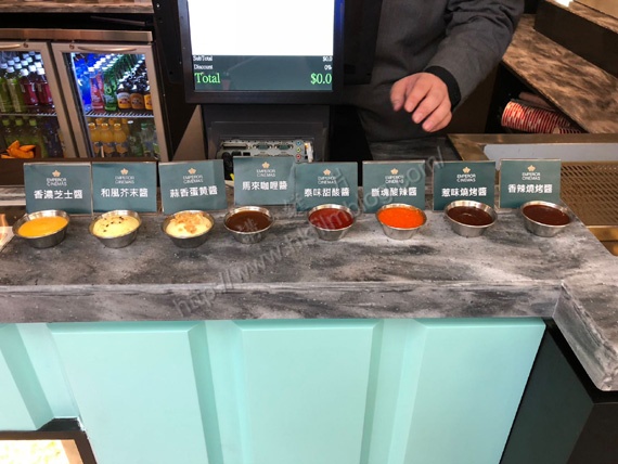 除了炸物外,英皇方面同時也提供八款醬汁以供選擇,更以喜、怒、哀、樂作為主題,當中代表「喜」的便有惹味燒烤醬與蒜香蛋黃醬。代表「怒」的則有香辣燒烤醬與斷魂酸辣醬,代表「哀」的則有和風芥末醬與馬來咖喱醬,而「樂」的代表則有香濃芝士醬與泰味甜酸醬。當中斷魂酸辣醬更是以超辣見稱。