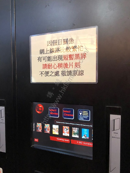 其實不少售票系統於交易較多時,也會出現延遲的情況。不過,由於自助取票機若出現長時間的黑屏的話,觀眾很易便會認為是否系統出現當機的情況,因而需要事先提醒。不過,倘若過了很久仍未能出票的話,還是要請戲院職員幫忙好了。