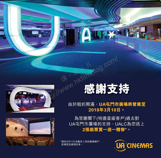 今年UA院線將有兩家戲院開幕,當中包括一月開畫的青衣城與預計今年內開幕的UA深水埗戲院,不過同時亦有戲院租約期滿易手,當中便包括UA屯門市廣場戲院。