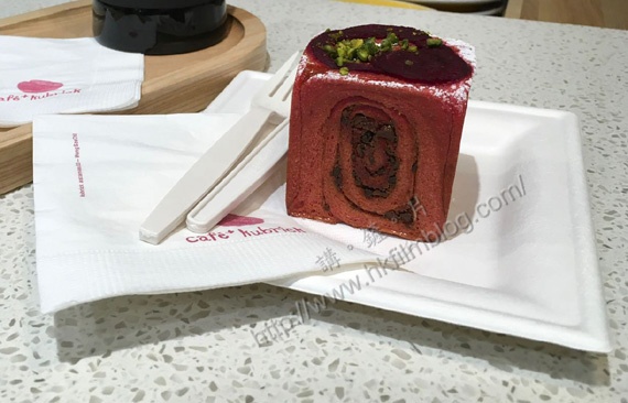 上圖所見,便是「講。鏟。片」情報人員於周末期間光顧太古城中心一期MOViE MOViE Cityplaza內的Cafe Kubrick所攝,可以看到該天提供的是一款紅菜頭汁配上開心果碎的麵包,不過怎樣看起來,感覺仿如是一件蛋糕多於是一個麵包。而且,這款麵包不止是賣相不俗,味道也相當清新。