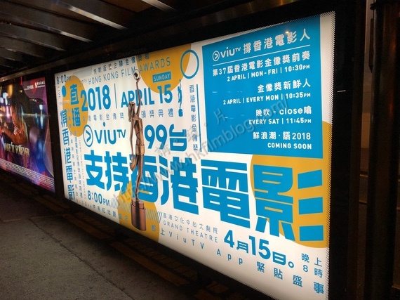 上圖所見,便是「講。鏟。片」情報人員日前於一個巴士站所攝,可以看到viu tv推出多個節目來支持香港電影,當中包括由今天開始推出的兩個節目《第37屆香港電影金像獎前奏》與《金像獎新鮮人》,而稍後亦會跟鮮浪潮合作推出《鮮浪潮.語2018》。