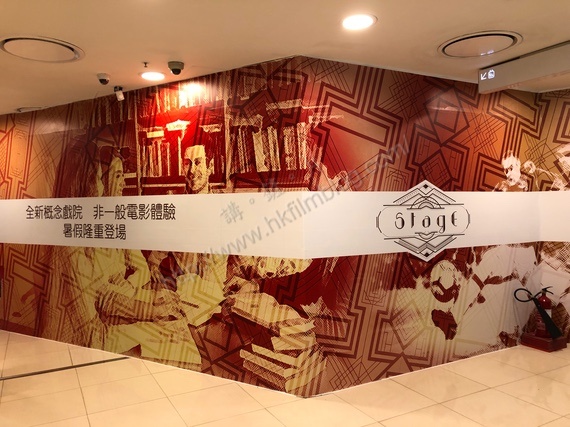 從圍板的左方看到寫上「全新概念戲院,非一般電影體驗」,更寫上「暑假嚴重登場」,意味該戲院將於今年暑假開業。不過更為有趣的是,右方出現了「Stage」的字眼,未知這個是否代表了該戲院的名字為「Stage」。
