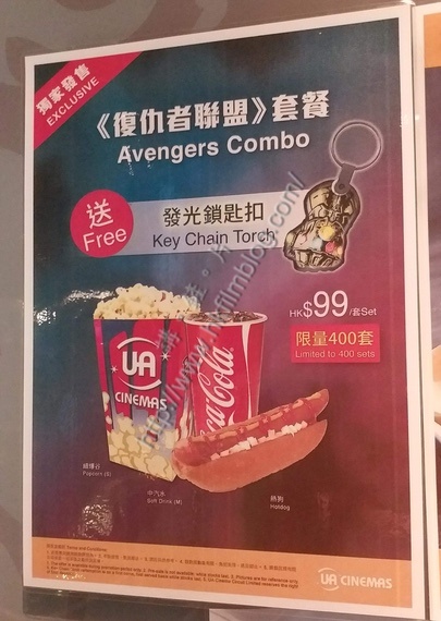 上圖所見,便是「講。鏟。片」情報人員在其中一家上映《復仇者聯盟3無限之戰》的戲院所攝,可以看到該戲院推出「《復仇者聯盟》套餐」,當中套餐其實說穿了就是熱狗加上中汽水與細爆谷的套餐,不同的只是加上一個《復仇者聯盟3無限之戰》相關的發光鎖匙扣,每套承惠港幣99元,並且限量400套。