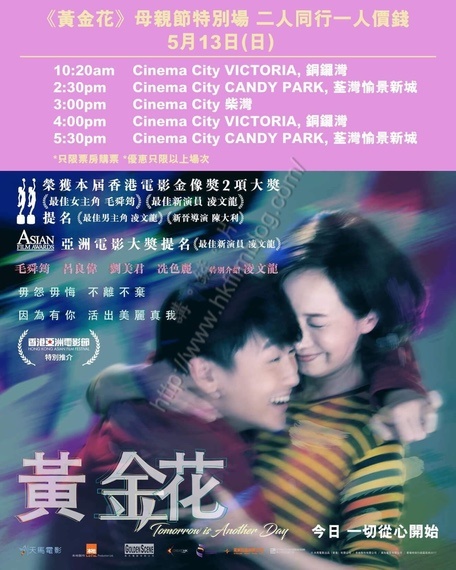 高先發行、伍健雄監製,毛舜筠、呂良偉、凌文龍、劉美君及冼色麗主演的《黃金花》自四月十二日在香港上映以來,挾著於香港電影金像獎奪得最佳女主角及最佳新演員獎項,也令其市場表現出現逆轉,至今仍在上映之中。而適逢電影於母親節繼續上映,也推出了新的優惠。