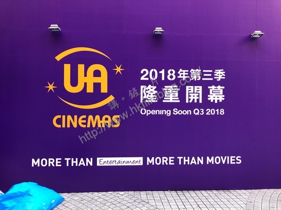 上圖所見,便是「講。鏟。片」情報人員今早於淘大花園商場三期原影藝戲院位置所攝,可以看到該商舖位置已經圍上圍板,並且有著UA院線的標誌,同時寫上「2018年第三季隆重開幕」,意味著未必趕及於暑假開業。