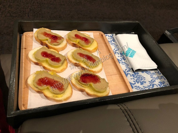 情報人員於購票時點了一客,每客共有六件,鵝肝醫配上果醬與麵包,味道不俗。