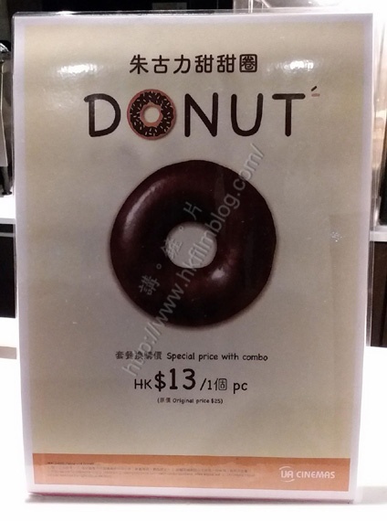 上圖所見,便是「講。鏟。片」情報人員於其中一家UA院線旗下戲院的小食部所攝,可以看到該戲院推出了朱古力甜甜圈。至於是怎樣的東西,相信大家看圖便會明白。而大家同時也看到售價為十三元一個,看起來好像價錢合理。