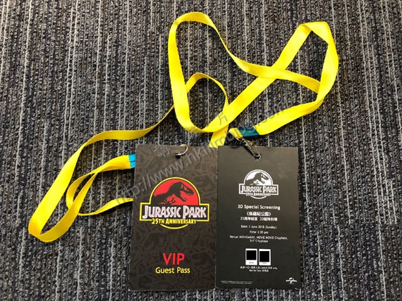 環球發行特別為是次的特別放映提供了紀念襟章,同時也提供了《侏羅紀世界:迷失國度》文件夾一份。