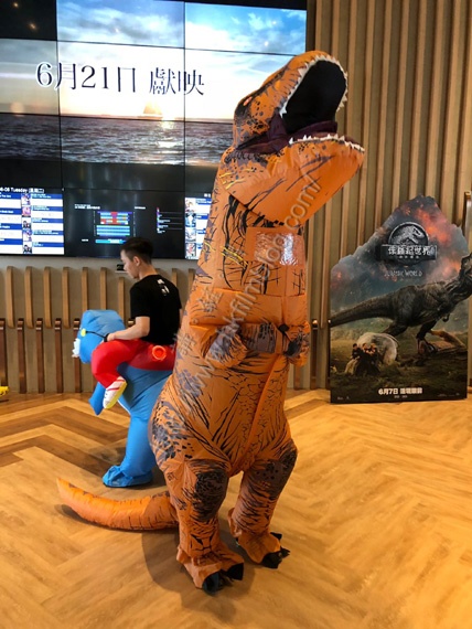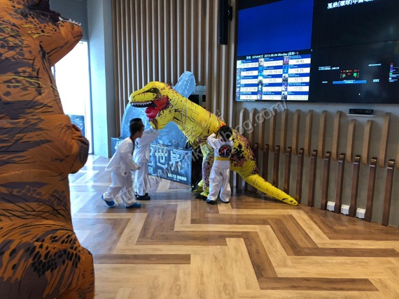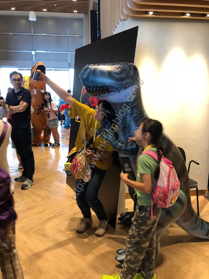 是次的放映活動除了電影放映外,環球方面更找來不少吹氣恐龍讓觀眾合照,當中不少家長便跟子女一起合照。