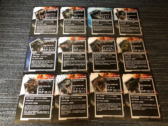 在文件夾裡,則夾附了十二張咭,介紹在片中出現的十二款恐龍與特性。