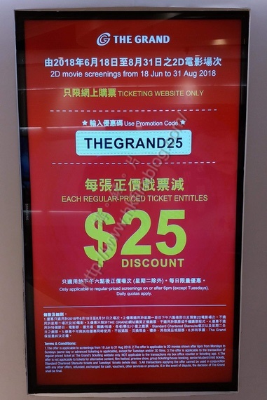 當然,如斯的優惠也有一定的限制,當中必需使用The Grand網站訂票,即使使用手機購票程式也不會享有優惠。而有關優惠應不適用於貴賓影院,也不能與其他優惠使用等。不過對於不是會員的觀眾,仍是有一定的吸引力吧!