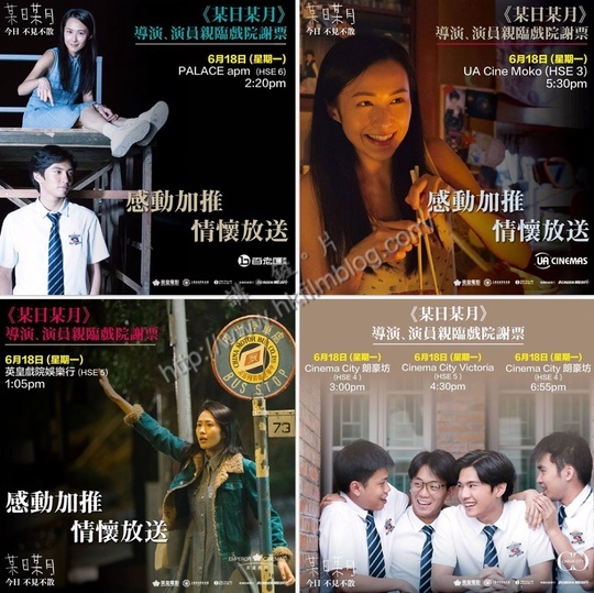 上圖所見,便是來自電影《某日某月》的官方Facebook截圖,可以看到該片於今天安排於五家戲院提供共六場謝票。當中觀塘Palace apm、旺角UA Cine Moko與中環娛樂行英皇戲院及Cinema City Victoria各有一場謝票,而旺角的Cinema City朗豪坊更有兩場謝票。