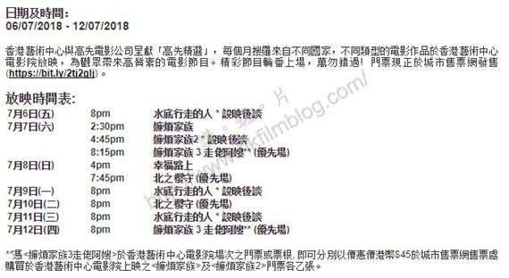 上圖所見,便是香港藝術中心與高先電影合作的高先精選,當中七月七日便安排連續放映三集《嫲煩家族》系列,當中下午二時三十分放映首集《嫲煩家族》、下午四時四十五分放映第二集《嫲煩家族2》,並於晚上八時十五分提供《嫲煩家族3走佬阿嫂》優先場。而當中《嫲煩家族2》將設有映後談環節。