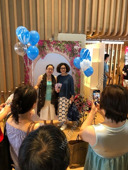 如斯的宣傳品,配上鮮花與氣球,吸引了不少觀眾前來拍照。